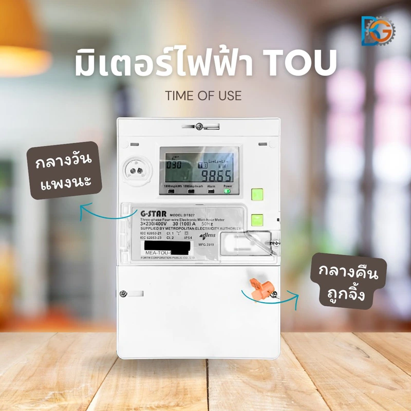ตัวอย่าง: มิเตอร์ TOU แสดง On-Peak 200 kWh, Off-Peak 300 kWh คำนวณค่าไฟโดยคูณหน่วยกับอัตราค่าไฟในแต่ละช่วง